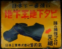 日本で一番強い「地下王地下タビ」踵の補強ゴム付・元祖 日本工業株式會社特約店 撮影地:秋田県(展示品) 日本工業さんは岡山県倉敷市にあった会社のようです。 |