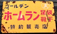 ゴールデン「ホームラン足袋・靴下」特約販売店 撮影地:北海道(展示品) 「ゴールデンホームラン足袋」というブランドには、北陸の金沢紡績さんや、その商事部門である金紡産業さんが関わっていたようです。 |