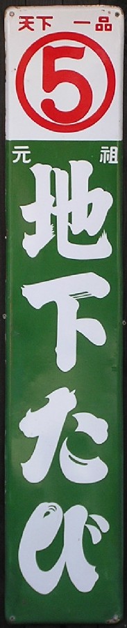 「アサヒ地下」 撮影地:北海道(展示品) 上の看板と比較すると「特許」の文字が無く、イラストの角度が違う別バージョン。 アサヒコーポレーションさんは昭和63(1988)年に現社名になりました。平成10(1998)年に会社更生法の適用を申請し倒産してしまいましたが、現在は再建されています。 |