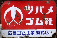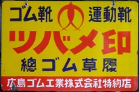 「ツバメゴム草履」 撮影地:兵庫県(展示品) 「ツバメ運動靴」 撮影地:大分県(展示品) 「ツバメゴム靴特約店」 撮影地:岐阜県 広島化成さんのページへ昭和22(1947)年創業、福山市のゴムメーカーさんです。現在は広島化成と社名を変えているようですが、ツバメのマークは同じです。 |