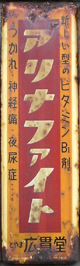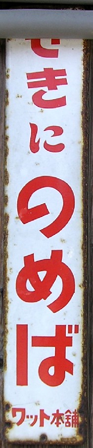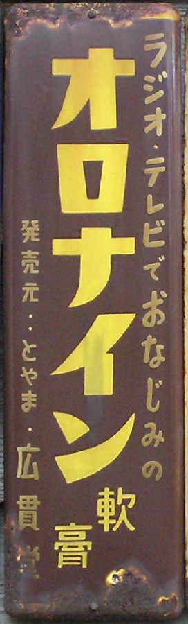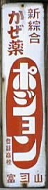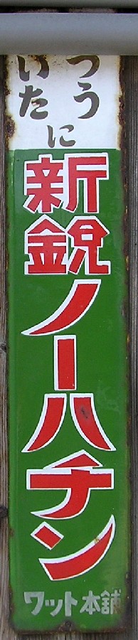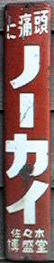 づつう・はいた「ノージン」「ノージ」 風邪に「高トン」クスリはタカタ 提供:亜寶麿裕寶さん 東亜製薬さんの「ノージン」ですが「ノーシン」と名称が酷似している為、訴訟問題が起き「ノージ」に商標変更したという看板です。「高トン」は同社の風邪薬のブランド。こちらも上市町のメーカーさんですが、中国資本による買収を経て、現在は北日本製薬と改称しています。 北日本製薬さんのページへ |
