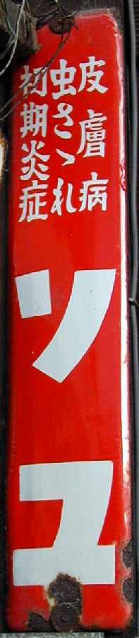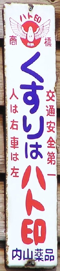 皮膚病・虫さされ・初期炎症「ソユ」 撮影地:兵庫県 交通安全第一「くすりはハト印」人は右・車は左 撮影地:北海道 富山市西公文名町の内山薬品商会さんの製品。 |