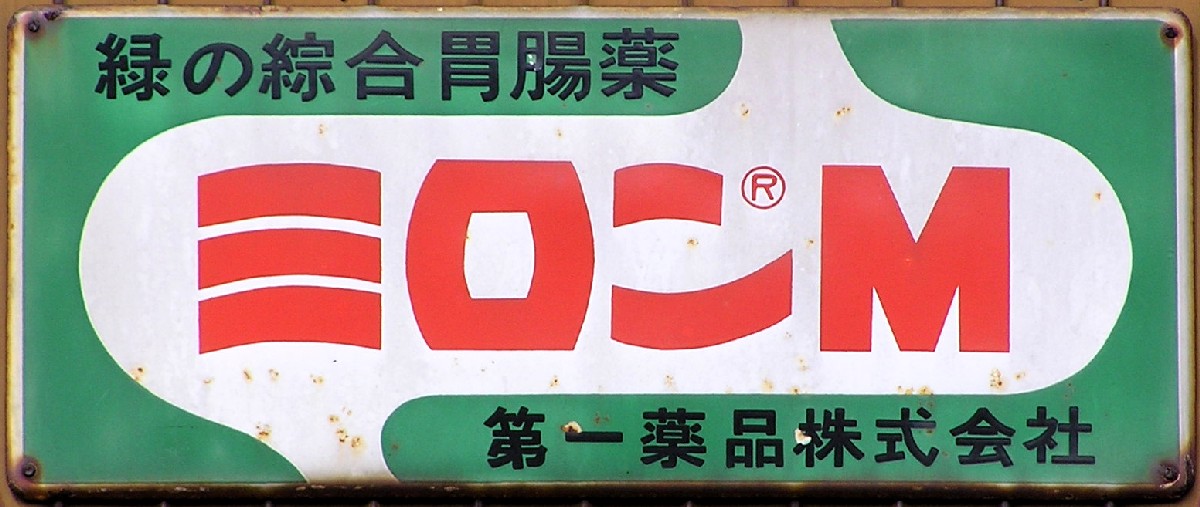 緑の綜合胃腸薬「ミロンM」第一薬品 撮影地:富山県 富山市の第一薬品さんの製品でした。同社は平成22(2010)年、テイカ製薬さんと合併。胃腸薬の「ミロン」は現行商品です。 |