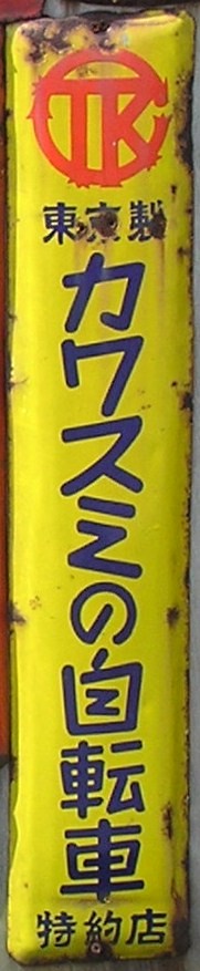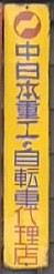 「中日本重工の自転車」代理店 撮影地:岩手県 三菱重工業さんのページへ中日本重工とは現・三菱重工業の一部です。三菱重工業は戦後の昭和25(1950)年に西日本重工業・中日本重工業・東日本重工業の3社に解体されました。そのうちの1社、中日本重工業は昭和27(1952)年に新三菱重工業と改称。その後、昭和39(1964)には3社が合併し、現在の三菱重工業となっています。したがって、この看板は昭和25(1950)年から昭和27(1952)年の間に作られたものでしょう。 |
