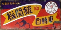 大臣賞受領に輝く「機関銃印自轉車」日本スヰフト 提供:しゅうさん 撮影地:鹿児島県 マークの中に「世界我市場」のお言葉。ローヤルプリンス号というバイクも作っていた模様。 |