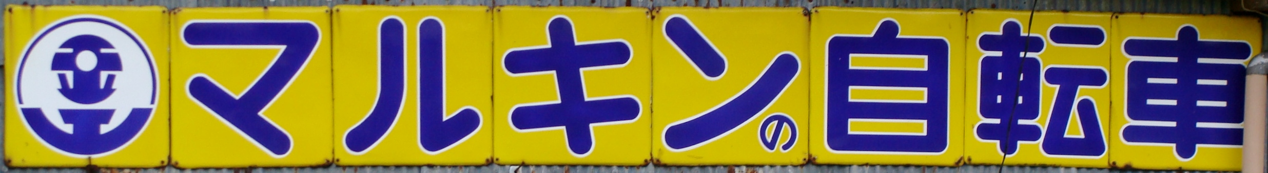 「マルキンの自転車」(縦型バージョン) 撮影地:北海道 丸金自転車工業さんのブランドだったようです。昭和33(1958)年の業界シェアは10位(2.1%)[1]。現在はホダカ株式会社さんがブランドを継承されています。 マルキン自転車さんのページへ ホダカさんのページへ |