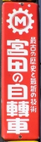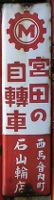 最古の歴史と最新の技術「宮田の自轉車」 撮影地:愛知県(展示品) 「宮田の自轉車」 撮影地:秋田県(展示品) 宮田製自轉車「ギヤエム號」代理店 撮影地:青森県(展示品) ミヤタサイクルさんのページへ東京(京橋区木挽町)の鉄砲鍛冶「宮田製銃所」から発展した日本最古の自転車メーカーです。明治26(1893)年に国産第一号の自転車を発売。昭和33(1958)年「宮田製作所」の業界シェアは3位(4.6%)でした[1]。以後近年まで自転車と消火器のメーカー「宮田工業」として継続していましたが、現在は消火器部門が合併によりモリタ宮田工業となっています。自転車部門は平成31(2019)年、台湾のメリダ社に譲渡されブランドは継続されています。 |