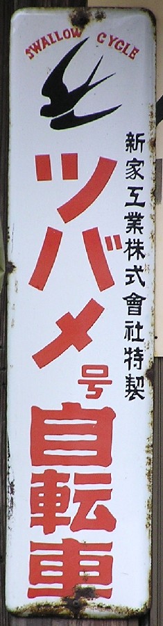 「ツバメ自転車」 撮影地:北海道 新家工業さんのページへ新家工業株式會社特製「ツバメ号自転車」 撮影地:兵庫県 明治36(1903)年、石川県山中町で創業したリムのメーカー。完成自転車ツバメ号は昭和21(1946)年発売。 |