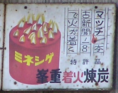 マッチ一本古新聞1/8で火が着く 特許品「峯重着火煉炭」 撮影地:福岡県 |