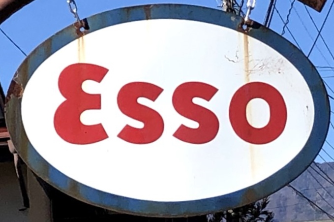「Esso」 撮影地:山梨県 「Esso」もエクソンモービルが持つブランドの1つ。かつてアメリカで寡占状態にあったスタンダード・オイルが反トラスト法により分割された際、Standard Oil Company of New Jerseyが作った商標です。日本では昭和36(1961)年から平成31(2019)年の間、Essoブランドのガソリンスタンドが展開されていました。エクソンモービル社の成立で同系となった「モービル」「ゼネラル」とともに「ENEOS」に統合され消滅。 |
