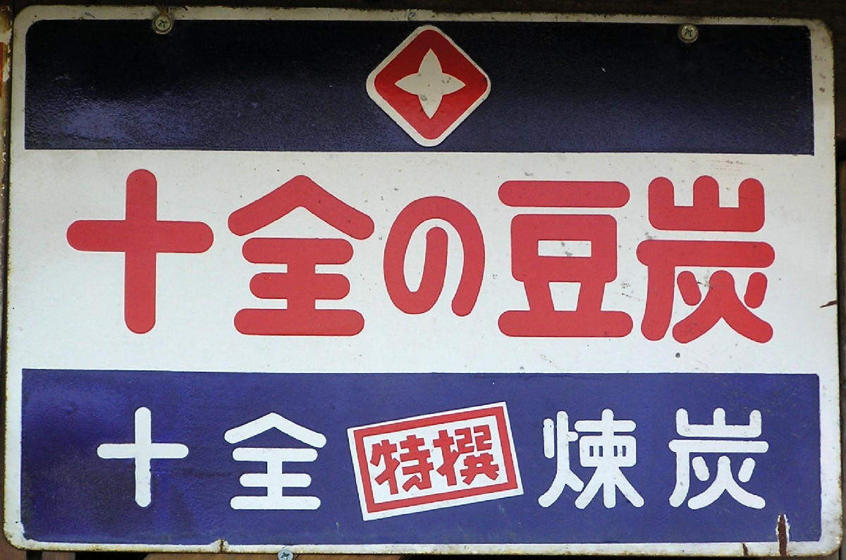 「十全の豆炭・十全特撰煉炭」 撮影地:北海道(展示品) 十全商会さんのページへ大正11(1922)年創業、大阪の燃料メーカーさんです。姫路・直江津・岡山にも工場があります。 |