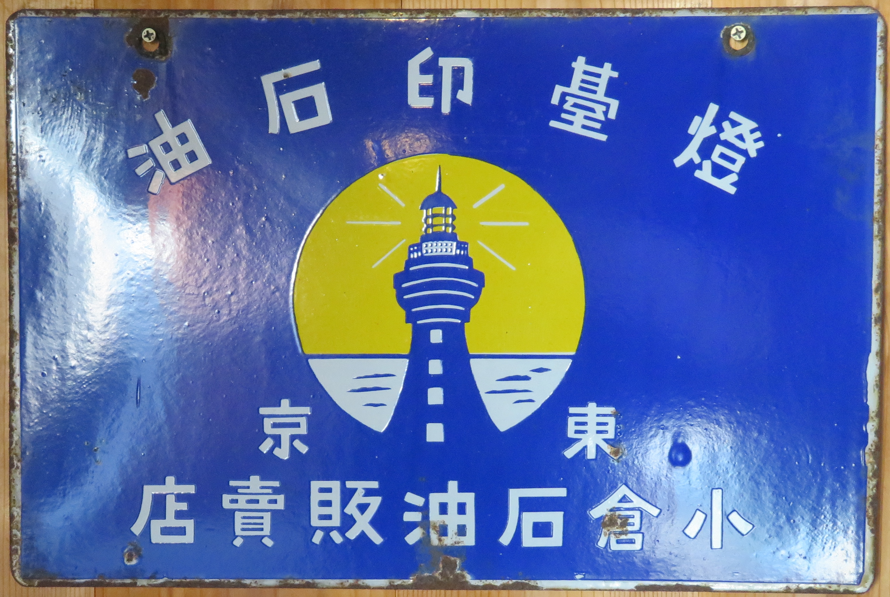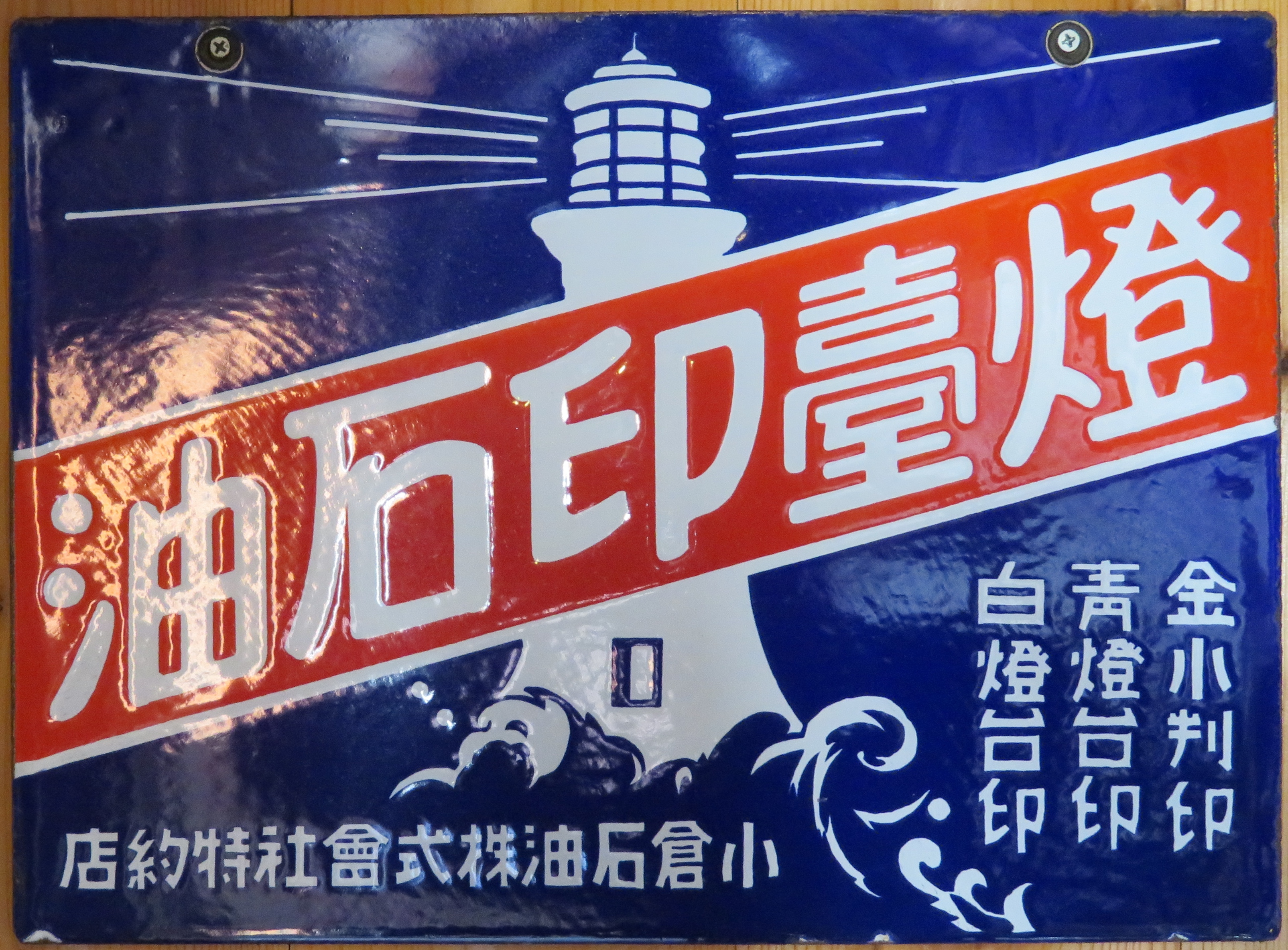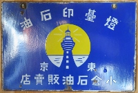 自動車用・工業用「揮發油」小倉石油株式會社 「燈臺印石油」金小判印・青燈台印・白燈台印 「燈臺印石油」小倉石油販賣店 (3枚とも)撮影地:静岡県(展示品) 埼玉県深谷出身で、明治から昭和初期にかけて「日本の石油王」とも呼ばれたという小倉常吉氏の会社・小倉石油の看板です。昭和16(1941)年、日本石油と合併。 |