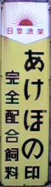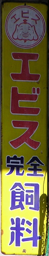 日魯漁業「あけぼの印完全配合飼料」 撮影地:茨城県 「エビス完全飼料」 撮影地:群馬県 昭和46(1971)年、日本農産工業と合併した東急エビス産業さんのブランドか? |