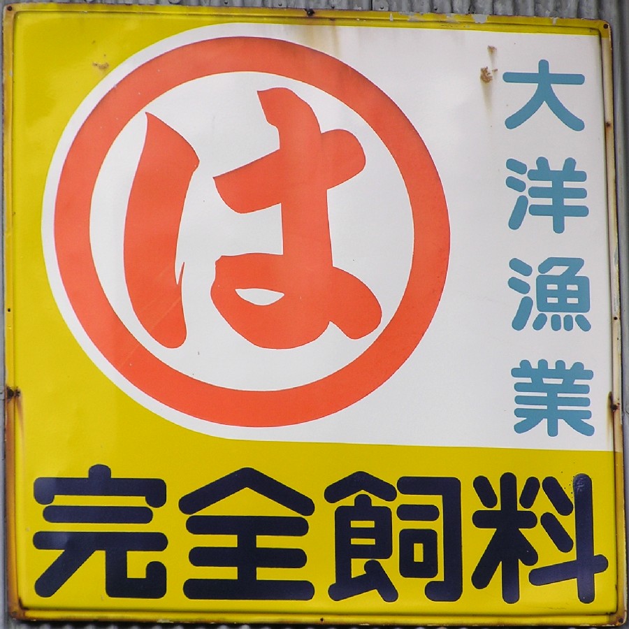 「まるは完全飼料」 撮影地:徳島県 大洋漁業(現・マルハニチロ)さんは、昭和35(1960)年に飼料の分野に進出しました。平成19(2007)年、マルハとニチロの両グループが経営統合されました。 マルハニチロさんのページへ |