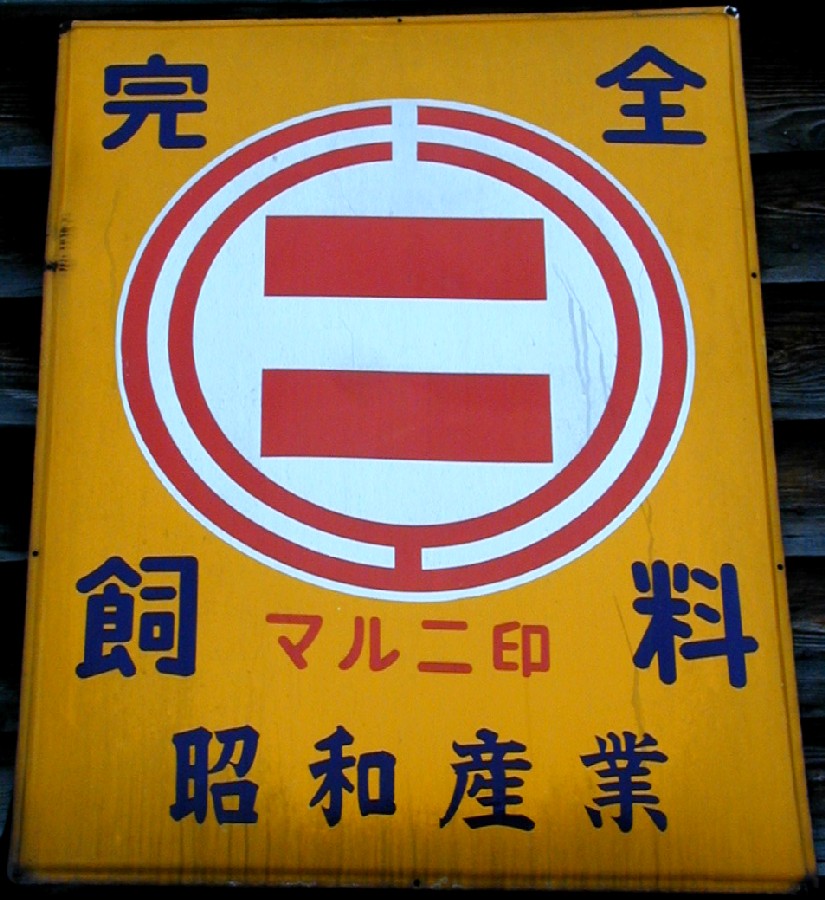 「完全飼料」 撮影地:茨城県 このブランドは何と読むのでしょうか?ヤマテン?イリテン? 三菱商事さんのページへ |