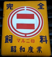 「マルエイ完全飼料」 撮影地:北海道 ・(縦型バージョン) 撮影地:北海道 日本農産工業さんが生産していたブランドです。創業時の社名「日本栄養食料」に由来していると思われます。 日本農産工業さんのページへ |