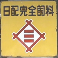 「日配完全飼料」 撮影地:岩手県 ・(縦型バージョン) 撮影地:岩手県 フィード・ワンさんのページへ昭和4(1929)年、三井物産など3社により設立。看板にも三井のマークが使われています。平成27(2015)年、協同飼料と経営統合されフィード・ワン(株)となりました。 |