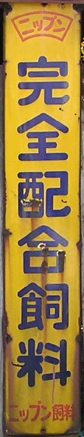 「ニッシン完全飼料」 撮影地:北海道 ・(縦型バージョン) 撮影地:茨城県 日清製粉グループの日清飼料さんの看板です。平成15(2003)年に丸紅飼料と経営統合しました。 日清丸紅飼料さんのページへ |