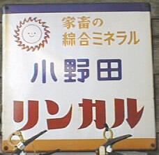 家畜の綜合ミネラル「小野田リンカル」 撮影地:和歌山県 昭和38(1963)年に発売された飼料用リン酸カルシウムのブランドです。 小野田化学工業さんのページへ |