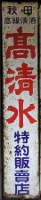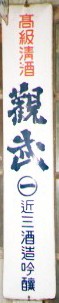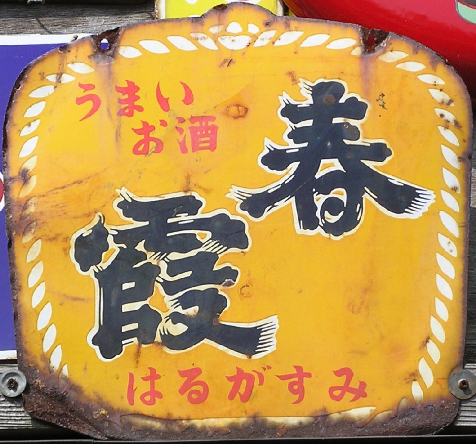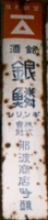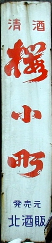 清酒「関山」 岩手県一関市:両磐酒造 撮影地:茨城県 昭和19(1944)年、一関エリアの酒造業者が企業合同して創業。この看板は北海道にもかなり残っているのですが、ほとんどが色あせてしまっています。中には真っ白になってしまったものもあります。琺瑯ではなく、おそらくペンキで塗装された看板なのでしょう。 |