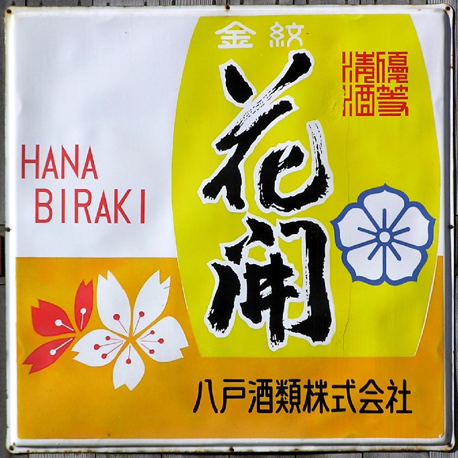 優等清酒 金紋「花開」 青森県八戸市:八戸酒類 撮影地:青森県 八戸酒類さんは昭和19(1944)年の企業整備令のため、八戸周辺の5つの蔵が統合してできた会社です。「花開」は三戸郡三戸町で作られていた銘柄です。 |