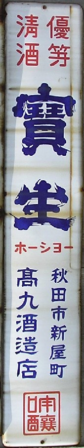 秋田高級清酒「高清水」 秋田県秋田市:秋田酒類製造 撮影地:秋田県 優等清酒「寶生」 秋田県秋田市:高九酒造店(現:秋田酒造) 撮影地:秋田県(展示品) |