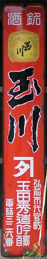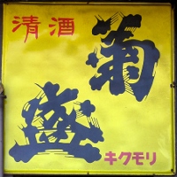 清酒「菊盛」 青森県弘前市:丸竹酒造店 撮影地:青森県 弘前市の西方にある酒蔵の店先に「菊盛」の看板はありました。かなり数が少なく貴重な看板でしょう。貞亨4(1686)年創業の津軽藩の御用商人で、また庄屋でもあった老舗です。 |