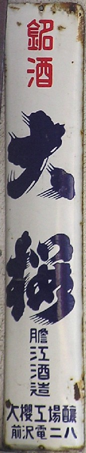 清酒「大桜」 岩手県奥州市:岩手銘醸 提供:事務屋青龍さん 撮影地:岩手県 銘酒「大桜」(縦型バージョン) 撮影地:秋田県(展示品) 昭和30(1955)年、大正初期から続いた蔵元2社が合併し、前沢町に岩手銘醸が誕生。主力銘柄の「岩手誉」の他、「大桜」や「陸奥の友」の銘柄を持ちます。 |