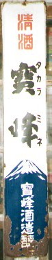 清酒「寶峰」 岩手県花巻市:宝峰(廃業) 提供:事務屋青龍さん 撮影地:岩手県 宝峰さんは明治42(1909)年、照源酒造店として創業。「高峰」という銘柄を作っていましたが、創業者がある夜に見た夢にちなみ「寶峰」と改めたそうです。看板に描かれている山は岩手山(南部富士)です。残念ながら平成14(2002)年に倒産してしまいました。 |