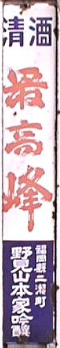 清酒「楢の露」 福岡県宗像市:勝屋酒造 撮影地:福岡県 清酒「最高峰」 福岡県飯塚市:野見山本家酒造(廃業) 撮影地:大分県 |