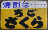 焼酎「ちごさくら」 撮影地:鹿児島県 鹿児島酒造さん(鹿児島市)のページへ鹿児島県阿久根市の安楽酒造さんの銘柄だったようです。同社は昭和62(1987)年に改称し、鹿児島酒造阿久根工場となっています。「ちご桜」として現存の模様。 |