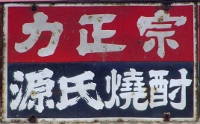 力正宗「源氏焼酎」 撮影地:静岡県 アサヒビールさんのページへ「源氏焼酎」は静岡県大仁町(現・伊豆の国市)で東洋醸造さんが作っていた焼酎の銘柄です。「力正宗」は姉妹品の合成酒です。同社は平成4(1992)年に旭化成さんと合併しました。旭化成さんは平成14(2002)年、低アルコール事業をアサヒビールさんに譲渡。「源氏」はアサヒビールさんの業務用ホワイトリカーのブランドとして現存しています。 |