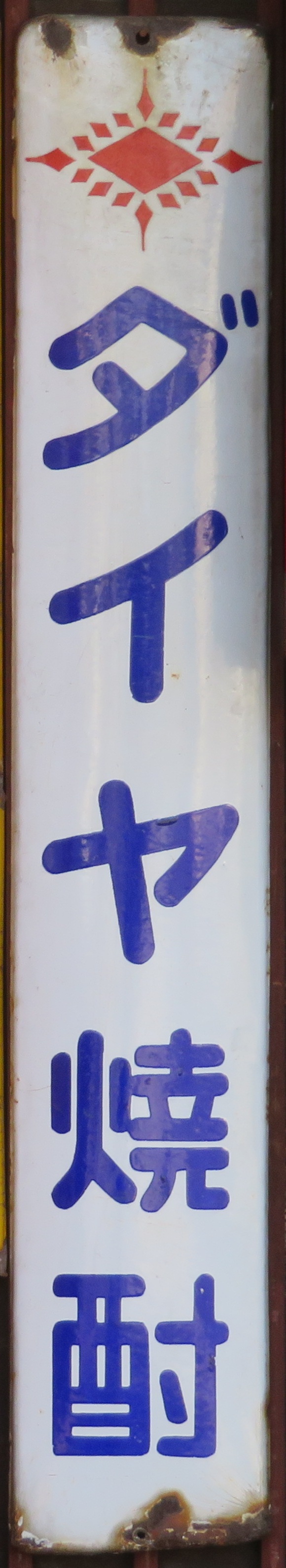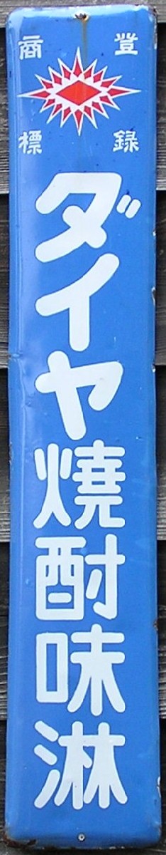 みんながほめる「ダイヤ焼酎」 撮影地:広島県 アサヒビールさんのページへ銘酒「初日」とともに協和発酵工業さんのブランドでした。平成14(2002)年、協和発酵工業さんの酒類事業はアサヒビールさんに譲渡されました。「ダイヤ」はアサヒビールさんの甲類焼酎・ホワイトリカーのブランドとして現存しています。 |