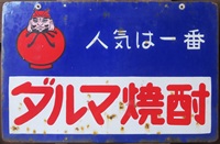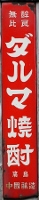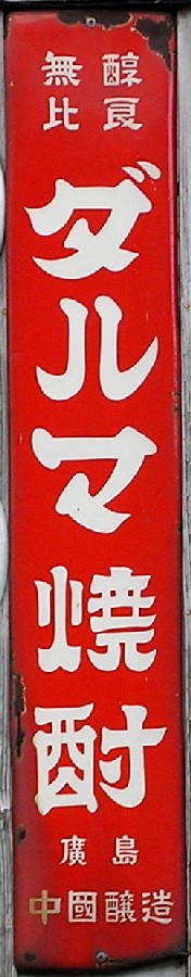醇良無比「ダルマ焼酎」(縦型バージョン) 撮影地:岡山県 創業時は「虎」「七福」「天狗」「ダルマ」等の銘柄がありましたが、大正8(1919)年に「ダルマ」がメイン銘柄となりました。昭和28(1953)年頃には活発な販売促進が行われ、工場はフル生産体制だったそうです。 |