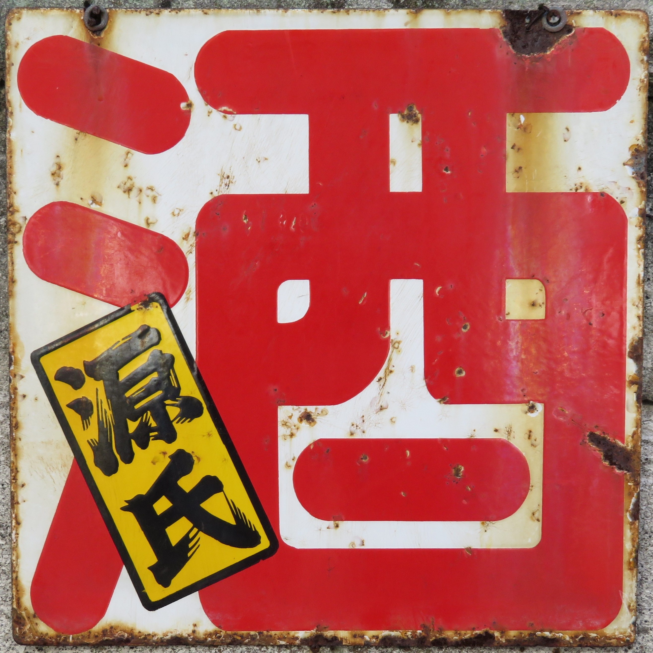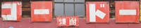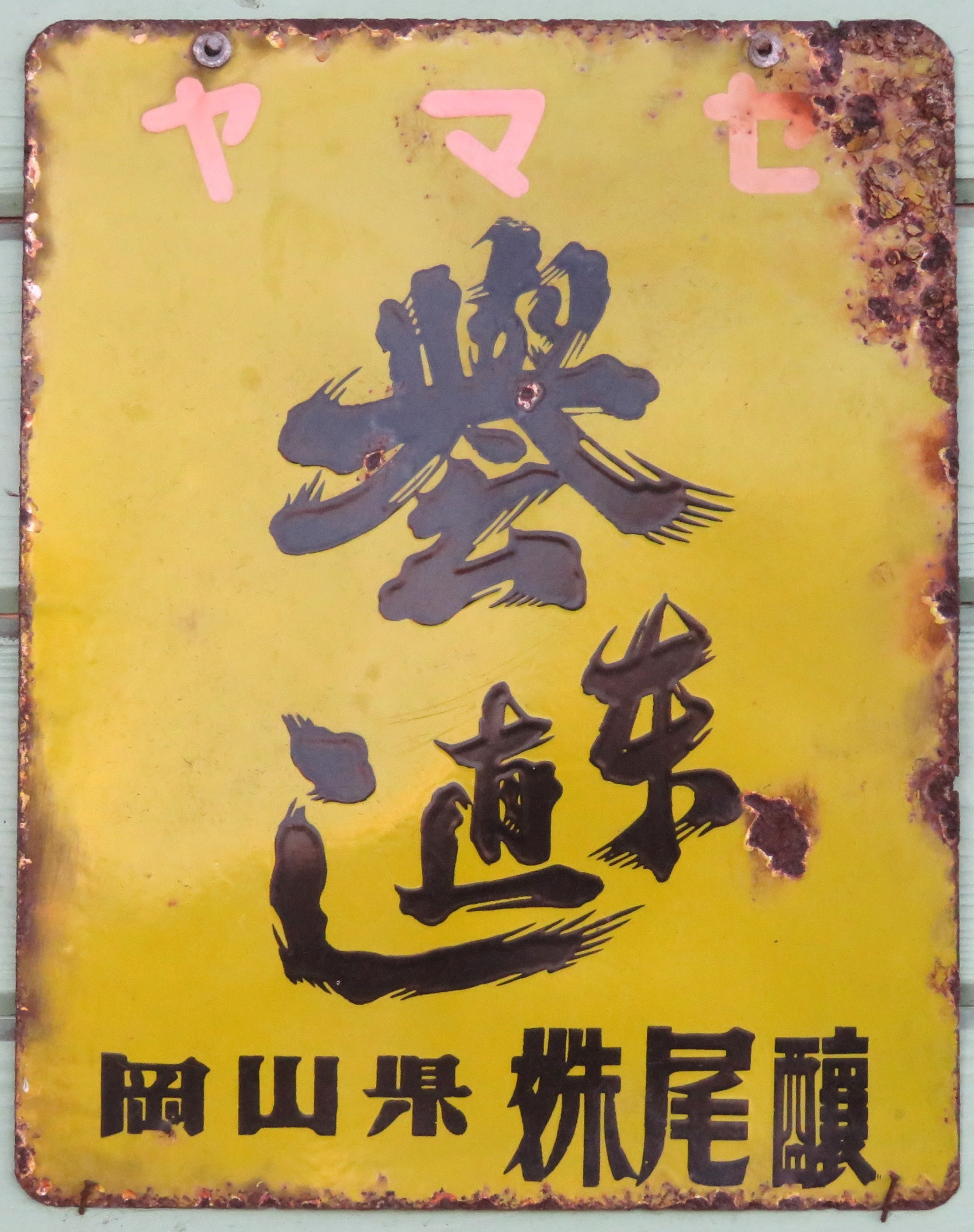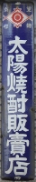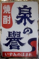 「酒(源氏)」 撮影地:静岡県 インパクトのある吊り下げ看板ですが、こちらもおそらく東洋醸造さんの酒類全般を広告しているものと推測しています。 |