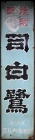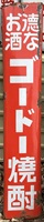 得な酒「ゴードー焼酎」 撮影地:北海道(個人所有) 軒先吊り下げ式の看板で、裏は清酒「花の友」の広告になっています。 |